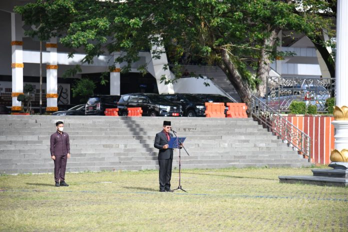 Mingrum Gumay yang juga inisiator program Sosialisasi Ideologi Pancasila dan Wawasan Kebangsaan (IPWK) di lingkungan DPRD Provinsi tersebut menjadi petugas upacara pembacaan ikrar hari kesaktian Pancasila tahun 2022.