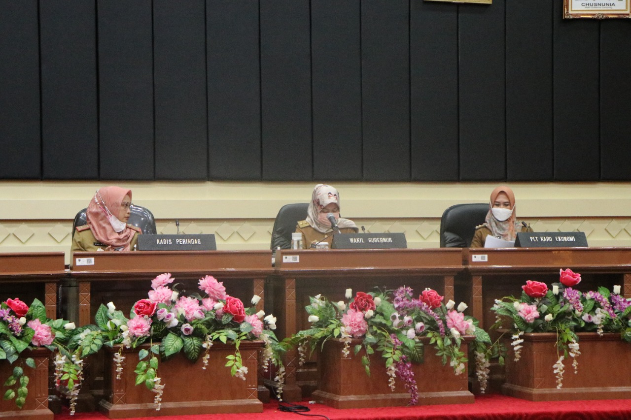 Plt. Kepala Biro Perekonomian Sekretariat Daerah Provinsi Lampung, Rinvayanti, Memimpin rapat koordinasi didampingi Kepala Dinas Perindustrian dan Perdagangan Elvira Umihanni.