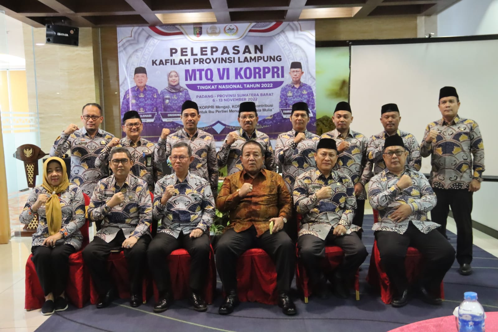 Bandar Lampung — Gubernur Lampung Arinal Djunaidi melepas keberangkatan Kafilah Korpri Provinsi Lampung yang akan mengikuti Musabaqoh Tilawatil Quran (MTQ) VI Korpri Tingkat Nasional Tahun 2022 di Kota Padang Provinsi Sumatera Barat, bertempat di Hotel Horison, Jumat (04/11/2022).