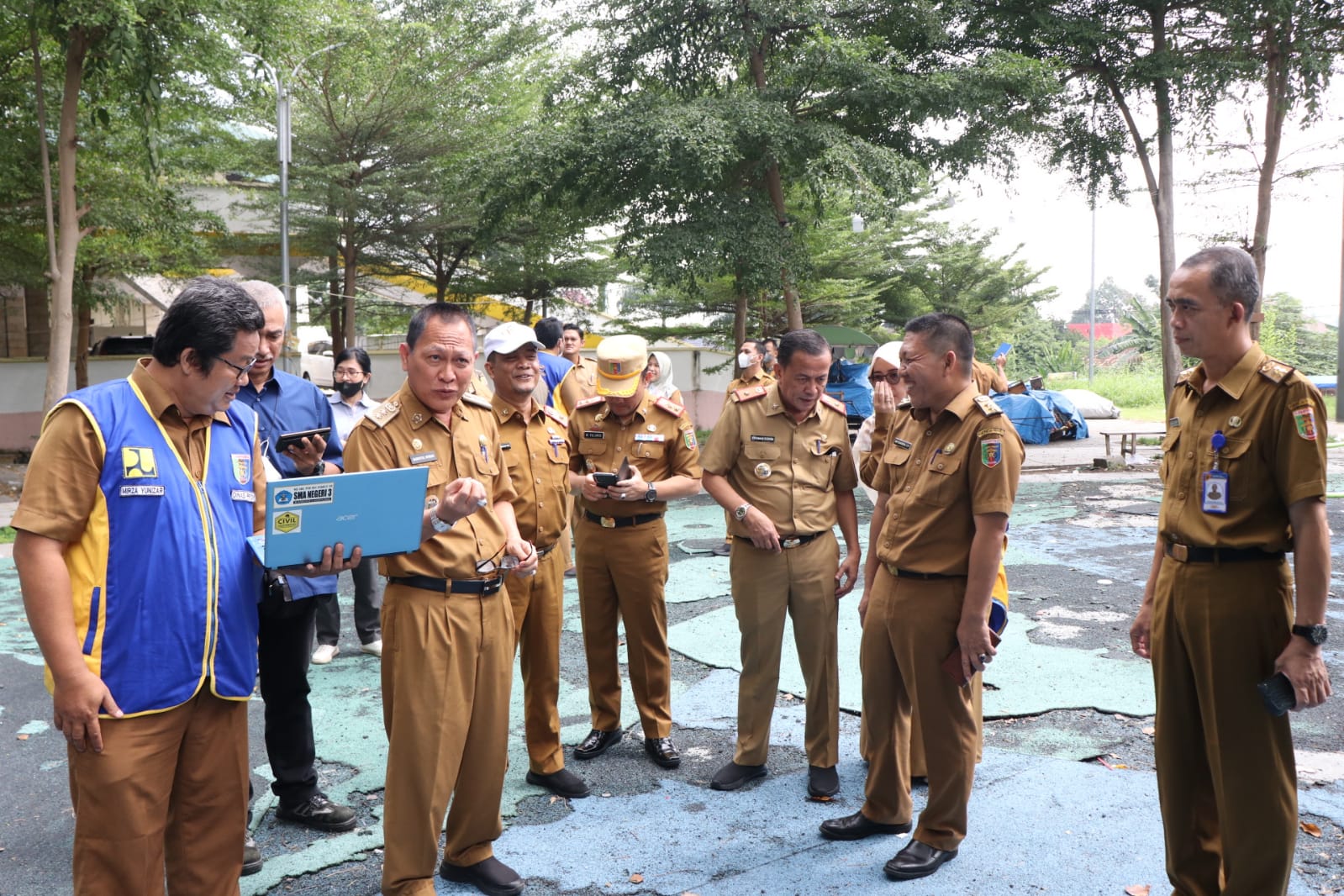 Dalam peninjauan tersebut, Asisten Pemerintahan dan Kesra didampingi OPD terkait yakni BPKAD Provinsi Lampung, Bappeda Provinsi Lampung, Dinas PKP dan Cipta Karya Provinsi Lampung, Dinas Kominfotik Provinsi Lampung, Biro Pemerintahan dan OTDA Provinsi Lampung, Biro Kesejahteraan Rakyat Provinsi Lampung, Biro Administrasi Pimpinan Provinsi Lampung, serta Biro Umum Pemerintah Provinsi Lampung.