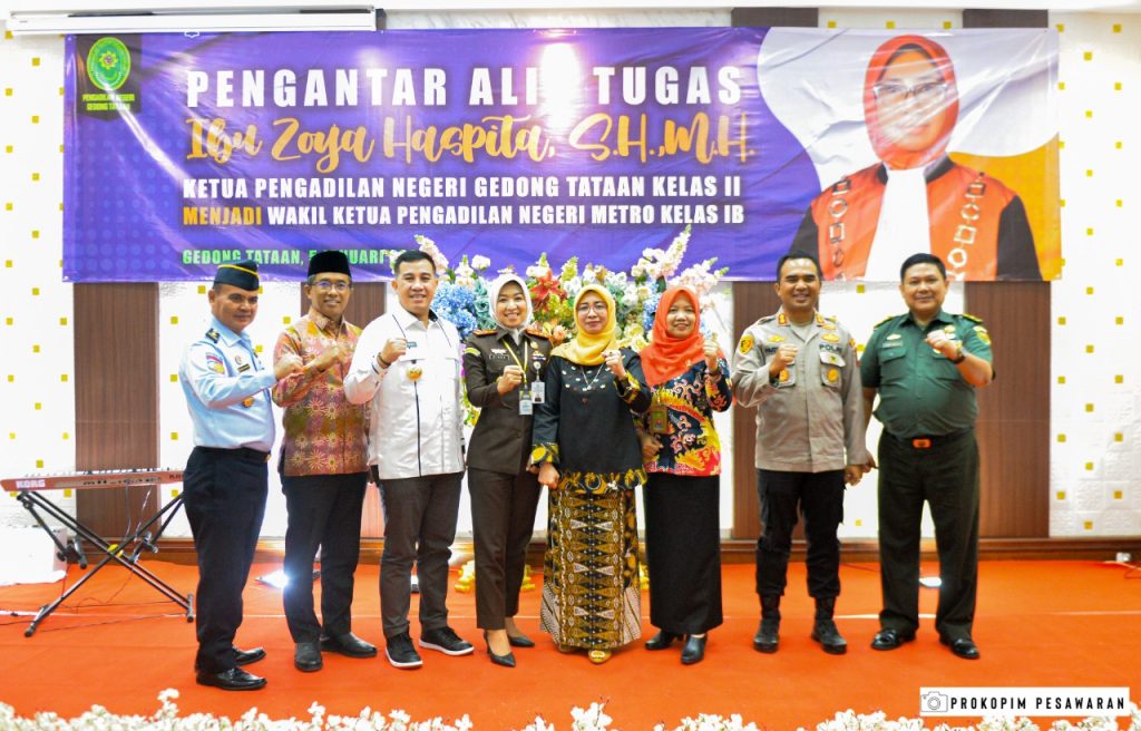 Bupati juga mengatakan Selamat berpisah dalam rangka pengabdiannya, namun hati kita tetap bersatu dalam menjalani rasa persaudaraan, sebab kita sebagai anak bangsa, bentuk pengabdian lain dapat kita jalani untuk mengabdi pada bangsa dan negara ini, lebih khusus untuk kemanjuan Kabupaten Pesawaran. “Saya ucapkan selamat jalan kepada Ibu ZOYA HASPITA, S.H.,M.H dan selamat bertugas di tempat yang baru. Semoga nanti sebagai Wakil Ketua Pengadilan Negeri Metro Kelas IB nanti dapat tetap menggoreskan tinta emas sebagai pengabdian yang akan mengukir nama ibu” tuturnya
