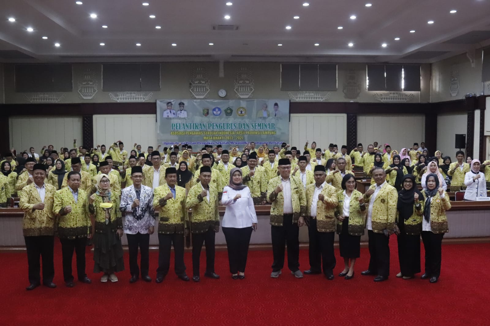 Bandar Lampung — Wakil Gubernur Lampung, Chusnunia, menghadiri Pelantikan Pengurus Asosiasi Pengawas Sekolah Indonesia (APSI) Provinsi Lampung Masa Bakti 2022-2027, di Gedung Pusiban, Rabu (8/2/23).