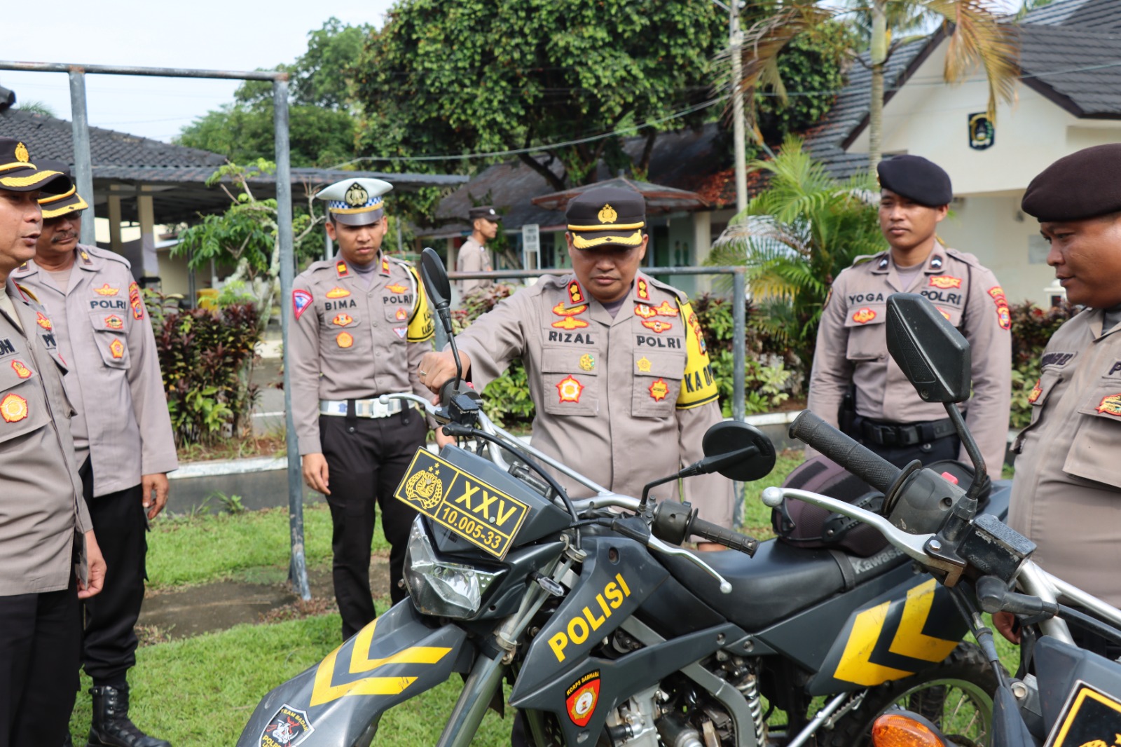 Dipimpin langsung oleh Kapolres Lampung Timur AKBP M. Rizal Muchtar, didampingi oleh Waka Polres Lampung Timur dan seluruh pejabat utama Polres Lampung Timur, melakukan pemeriksaan satu per satu seluruh kendaraan Dinas R-2, R-4 dan senpi.