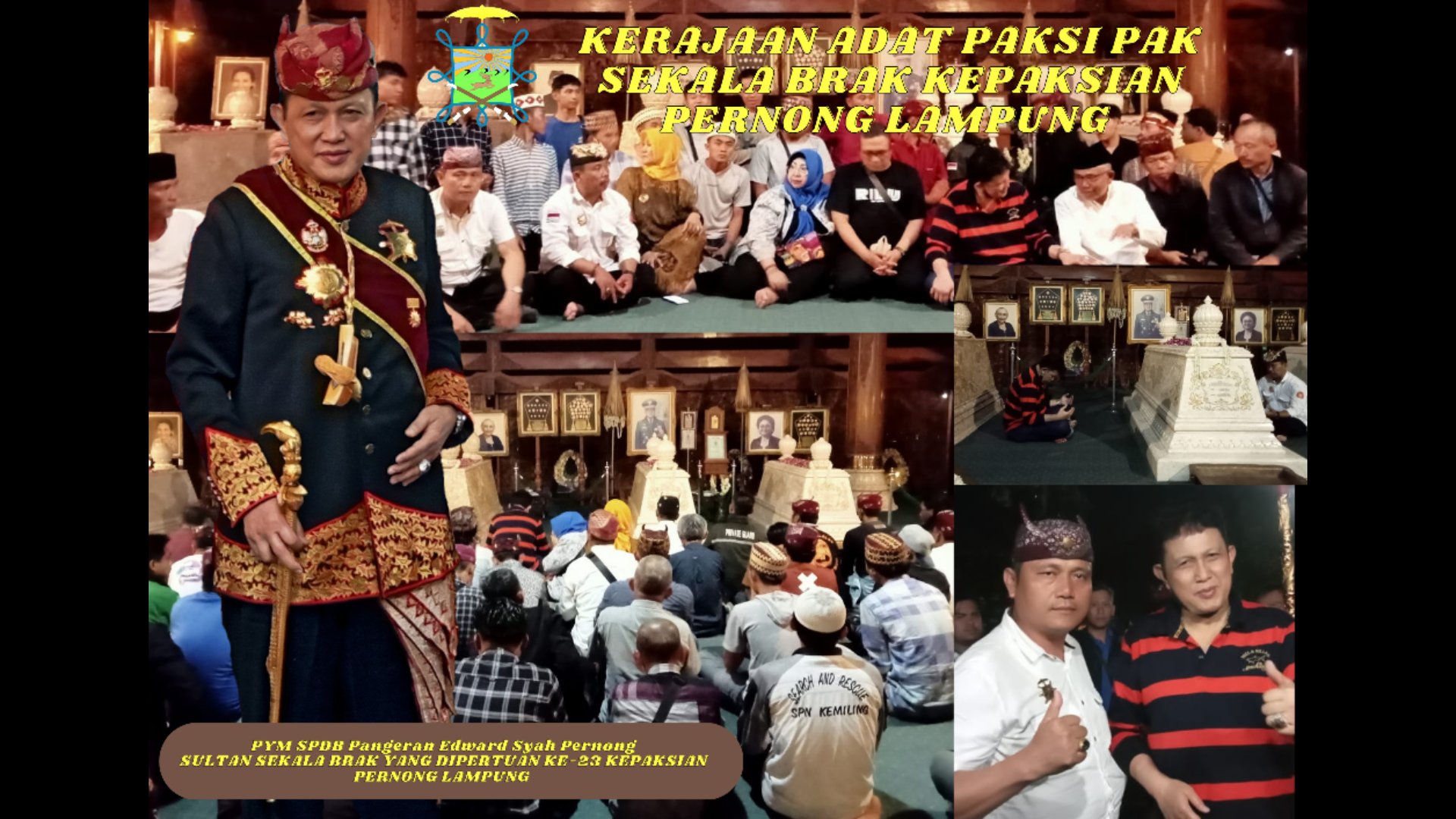 Jawa Tengah, – Paduka Yang Mulia Saibatin Puniakan Dalom Beliau (PYM SPDB) Pangeran Edward Syah Pernong Sultan Sekala Brak yang Dipertuan ke – 23 Kepaksian Pernong Lampung berziarah ke makam Astana Mangadeg dan Astana Giribangun, bersama jajaran perangkat Adat Kerajaan Adat Paksi Pak Sekala Brak Kepaksian Pernong Lampung, Jum’at (17/02/23).
