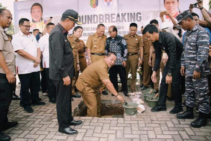 Gubernur, Ketua DPRD Lampung bersama Staf Ahli Kemenpora Lakukan Peletakan Batu Pertama Pembangunan GOR Saburai di PKOR Way Halim