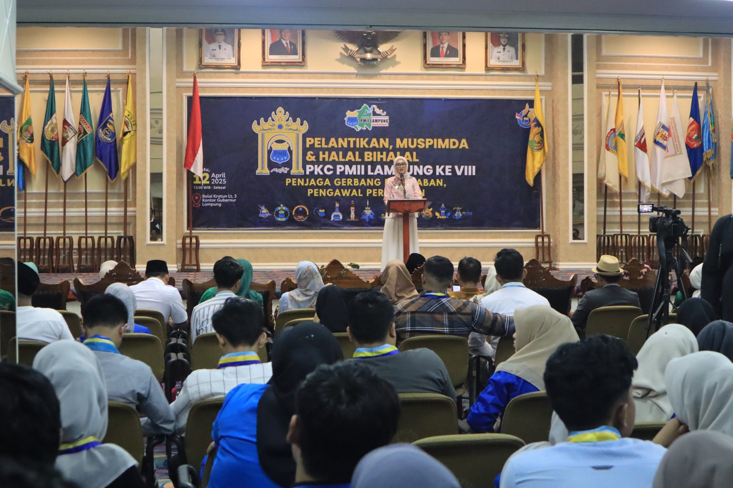“Atas nama Pemerintah Provinsi Lampung, saya menyampaikan selamat dan sukses kepada para pengurus PKC PMII Lampung yang baru saja dilantik. Semoga dapat mengemban amanah dengan baik dan memberikan kontribusi nyata bagi kemajuan kaderisasi dan pembangunan daerah, khususnya di Provinsi Lampung,” ujar Wagub Jihan saat menghadiri kegiatan Pelantikan dan Musyawarah Pimpinan Daerah (Muspimda) Pengurus Koordinator Cabang PMII Lampung yang Ke-VIII di Balai Keratun Kantor Gubernur Lampung, Sabtu (12/04/2025).