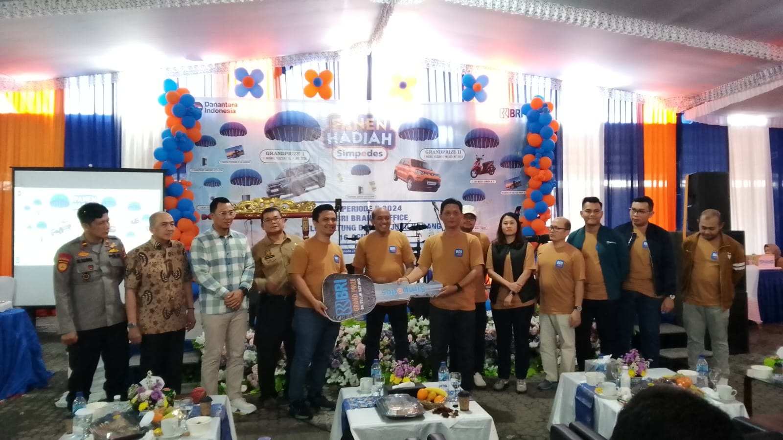 Suasana meriah menyelimuti acara Panen Hadiah Simpedes BRI yang digelar Kantor Cabang (Kanca) Telukbetung, Bandarlampung, Sabtu (16/8). Agenda yang dilaksanakan dua kali setahun ini menjadi momen selalu dinantikan para nasabah karena BRI menghadirkan beragam hadiah spektakuler. Pada periode II-2024, BRI Kanca Telukbetung menyiapkan total 49 hadiah yang terdiri atas 2 unit mobil, 3 unit motor, dan 44 barang elektronik. Seluruh hadiah tersebut merupakan bentuk apresiasi BRI kepada nasabah Simpedes yang setia menabung.